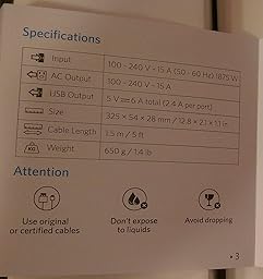 It is designed for six AC outlets and four USBs, designed with smart detection (up to 2.4 Amps per USB port) so you can plug your tablet or phone in wherever you please. The cord is really hefty and it has a nice casing so I think this will hold up quite well.