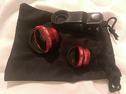 Bastex - 180° Fish Eye Lens + Wide Angle Lens + Macro Angle Red Camera Lens Kit with Clip-On and Black Carrying Pouch for iPhone 6+/6/5c/5/4/3, Samsung Galaxy S6 Edge/S6/S5/S4/S3, Note Edge/4/3/2/1, iPad/iPad Mini and Many More