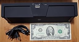 Very sleek look and nice sound that gets much louder than we'd expected for a small speaker. It holds charge well; I can use it all day or most of the day and not need to charge it daily. We've used it via the Bluetooth capability with a radio app, as well as just using the radio station option on the speaker itself.