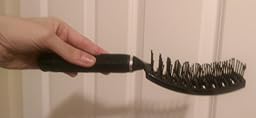 This is my favorite hairbrush I've owned but it's not perfect (for me!). What makes it unique for me is the fact that it's not just another huge paddle brush. The paddle is actually curved to the round shape of your head so each brush stroke gives me roughly three times the coverage of what another brush it's size would cover. For me, having thick hair and lots of it, time is of the essence!