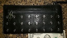 Epokris Womens Skull Long Purse Ladies Leather Wallets Black Handle Clutch 005BL