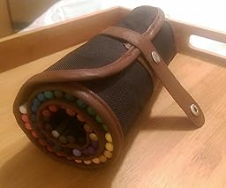 The strap is designed to be used two different ways, as shown in the product pictures. It fits slightly loosely when rolled up. I rated these 4 stars because of the case because I think, for the price, you're paying for it. I'd rate the pencils 5 stars.