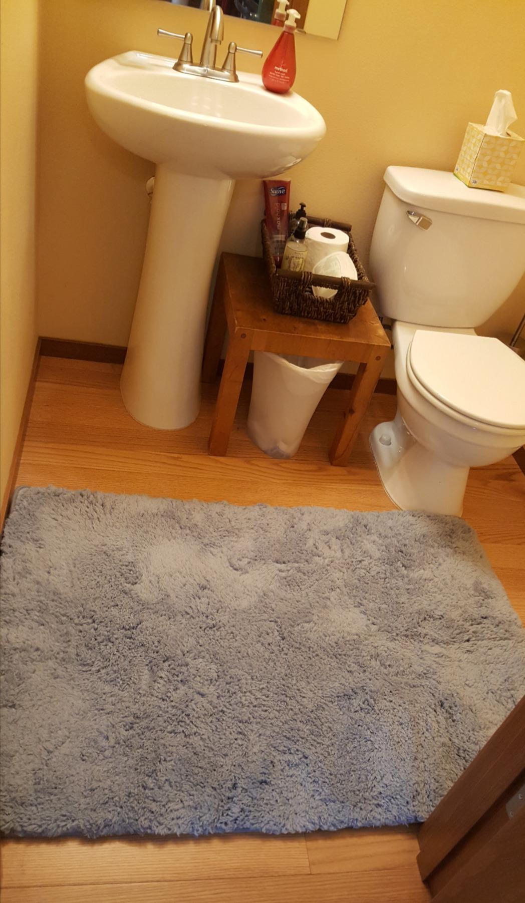 I considered giving it a lower rating because it's not (in my opinion) as advertised but because of the quality, only removed one star. The color is more of a blue than it is grey (it is greyish-blue). It is however, extremely soft under the feet and has a nice, non-slip backing.