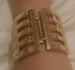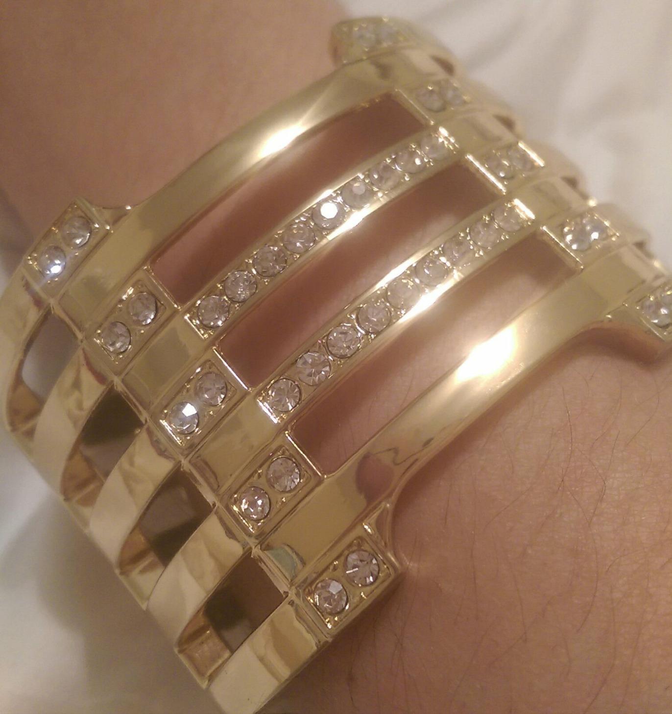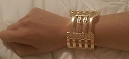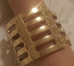 JoinMe Women's Punk Crystal Hollow-Out Wide Rock Bracelet Cuff Bangle Beaded Bling Gold-Tone