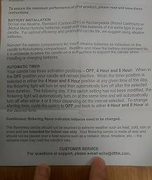 These candles are adorable and work as advertised. They have an awesome timer feature, giving you two options, for having them run daily for four or eight hours, automatically. Very innovative.