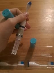 This toothbrush works fantastic and runs on just one AAA battery. The cover makes it perfect for travel or for home because it prevents any mess in a cup or on the counter.