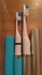 Uploading some photos so you can get a closer look. (The silver toothbrush is my other toothbrush, pictured just to show you the difference in size.)