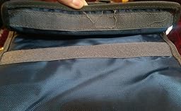 I'd rate it 5 stars for quality and size if not for the threads I pictured up close. The handle expands in length to be able to put my arm through it and carry it hands free which is one of my favorite features. I took a photo with it extended to it's furthest so you can get a closer look.