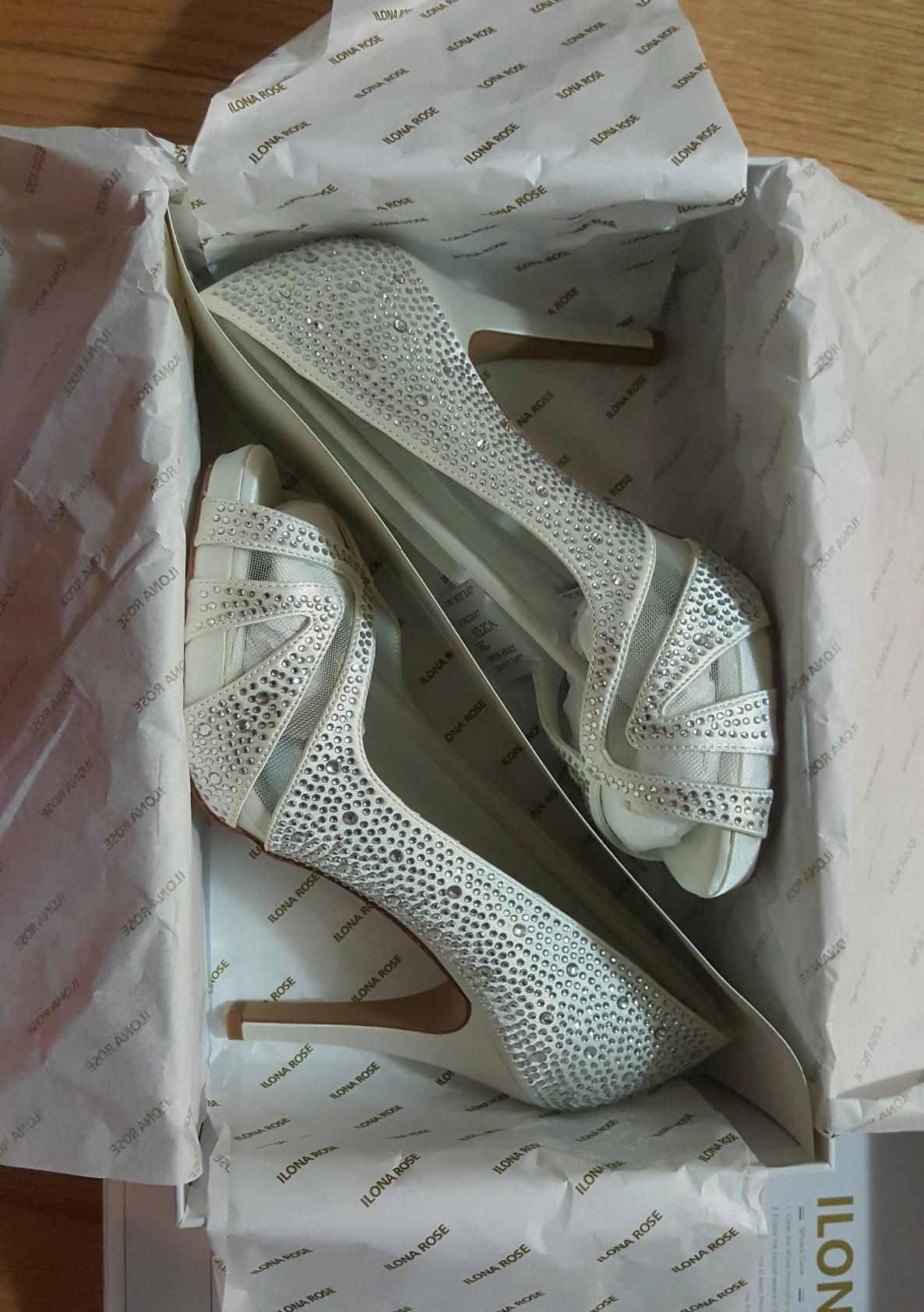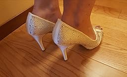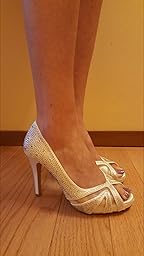 This review is from: LUXVEER Satin Bridal Shoes with Silver Rhinestone Medium Heel 4inch-Peep Toe (Apparel)