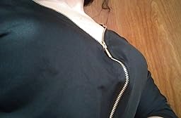 If I wore it unzipped, lower than any v-neck top I've owned, it looked better but then I'd want to wear a cami or cropped top underneath. Zipped anywhere higher than the extreme low, it puckers outward like have a large lump under my top (see my last uploaded photo). If not for the zipper issue, I'd have rated this three stars rather than two.