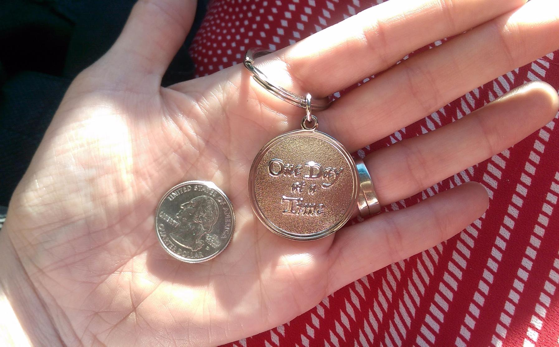 This token makes a very special gift for a recovering addict. The two mantras, one day at a time and the serenity prayer, are invaluable reminders for anyone fighting a battle that is bigger than themselves.