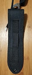 The sheath is equally rugged and feels well made. It has a snap closure that keeps it securely inside, even if hung upside-down. It's designed with straps making it easy to attach around your calf or boot.
