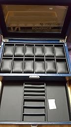 The size is appropriate for comfortably fitting twelve large faced men's watches, plus additional jewelry below. My favorite feature of this organizer is that the clear top is made of real glass. Makes for a very nice, quality looking piece.