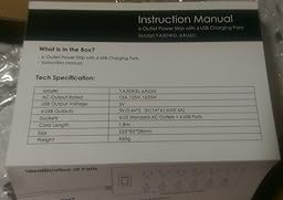 It is designed for six outlets and six USBs, two are for charging a tablet and the other four are for your smartphone (or devices with similar charging needs). It fits perfectly on the windowsill behind the bed where we're currently staying.
