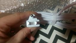 When facing it plugged into the outlet, the cord does not lean left or right as some other designs do. Length is correct, 7 ft, as listed. True white, not an almond color, so it looks nice with a white outlet and light carpet where visible.