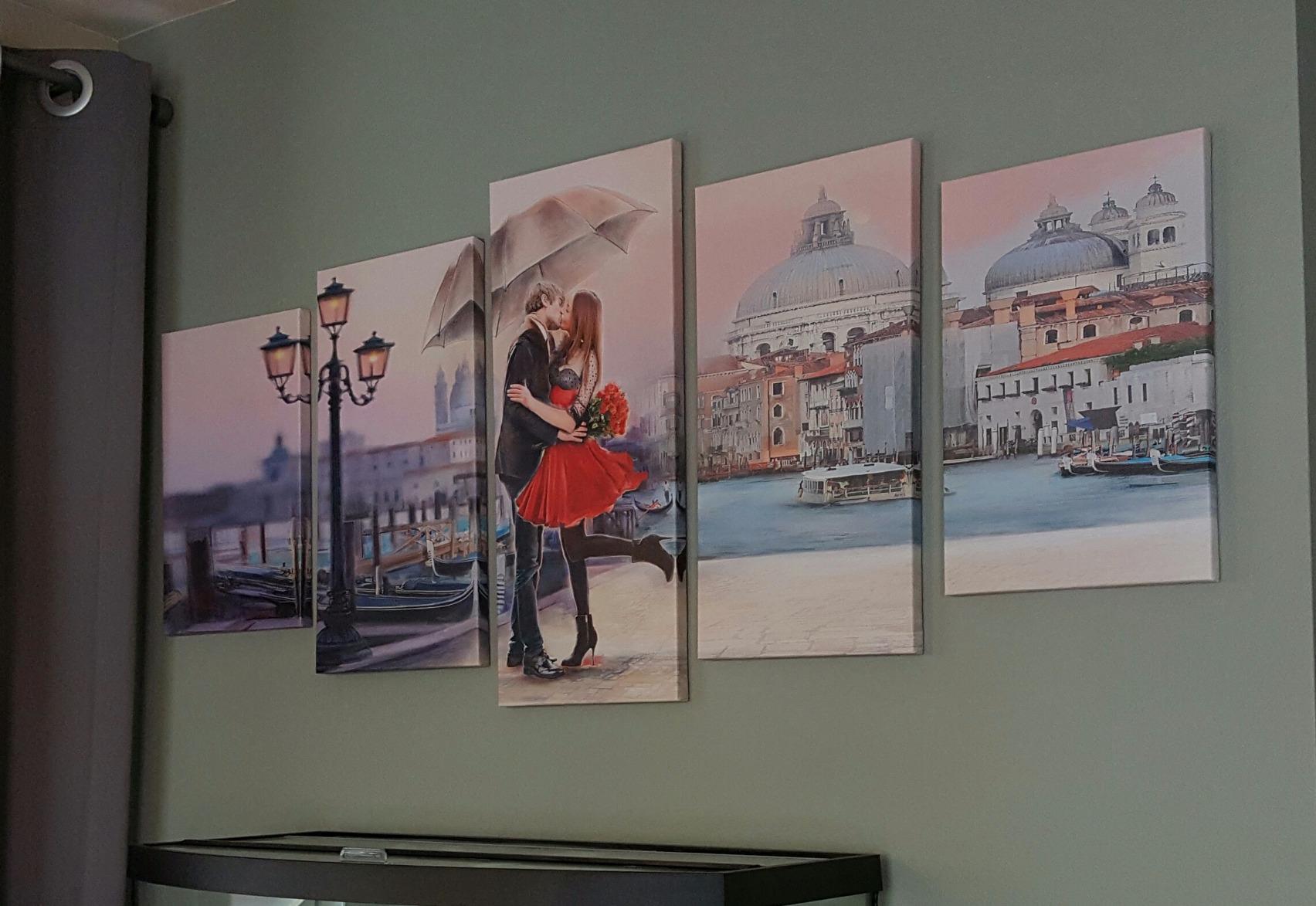 The kind folks at Sweety Decor Arts provided me with this 5 piece set of Modern Canvas Prints (of Sweet Love Kiss in Paris Landscape Oil Paintings) in exchange for sharing my unbiased review...