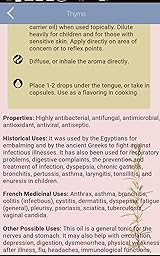 Great oil and handy app. Uploading some photos so you can get a closer look at the oil as well as the many benefits and uses of this essential oil. Smile. Hope this is helpful!
