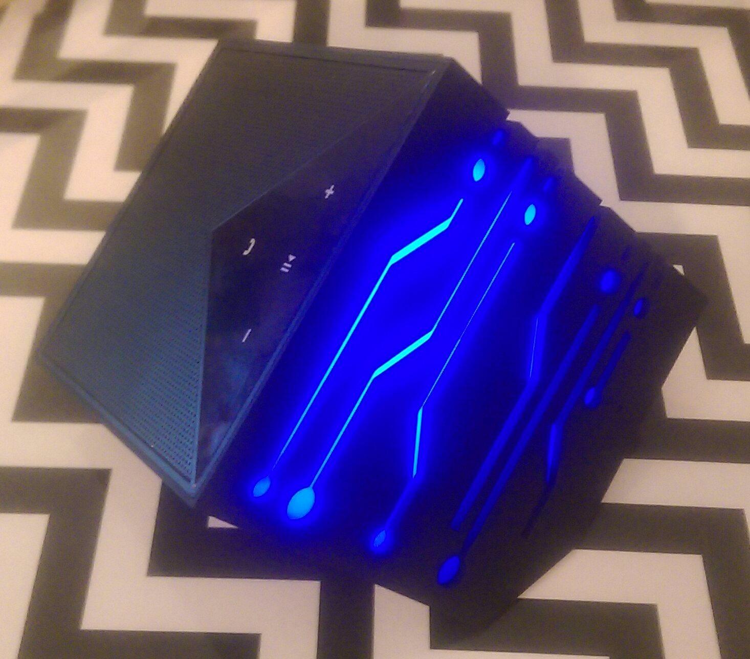 Verh nice speaker! Feels smooth to the touch like silicone and appears to be built to last. Easy to use. The way it lights up with sound is very sleek and has a really dynamite look!