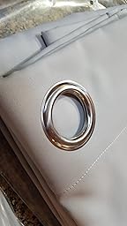 These have metal grommets at the top for hanging them, with a nice chrome looking finish. What I like about grommets is that you can hide your curtain rod brackets by putting the last grommet on each end, outside of the bracket. This gives a clean look. They also glide across the curtain rod quickly and easily when needed.