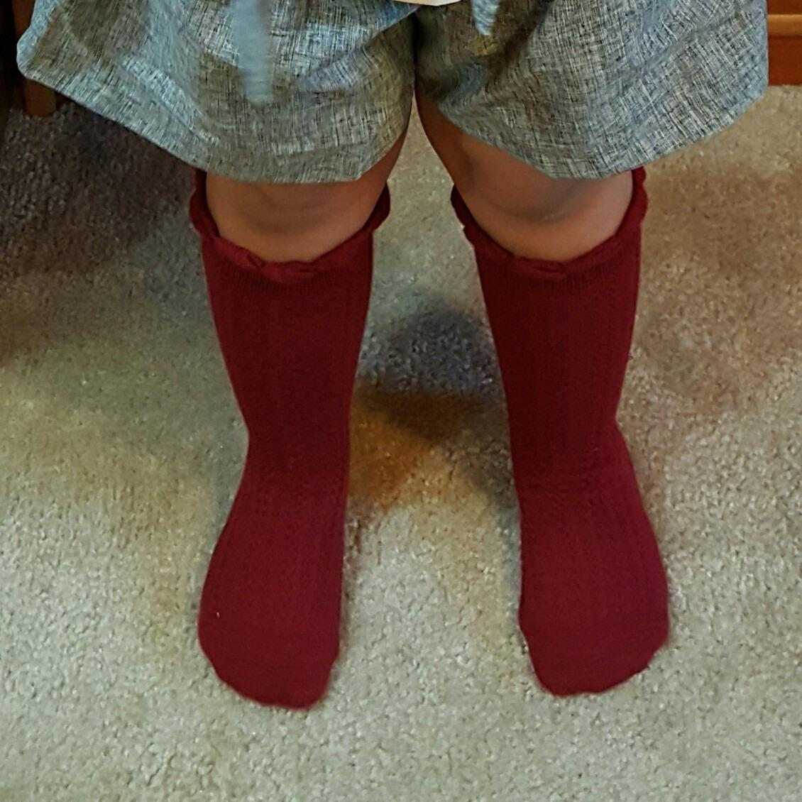 These socks are almost knee highs on her and they are the cutest she owns. The details make these look more expensive than they are.