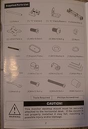 This product arrived as pictured and described. My husband had no trouble putting it together with the provided instructions and is extremely happy with it. He had been looking for one for his dual monitors at work and this one fit the bill perfectly.