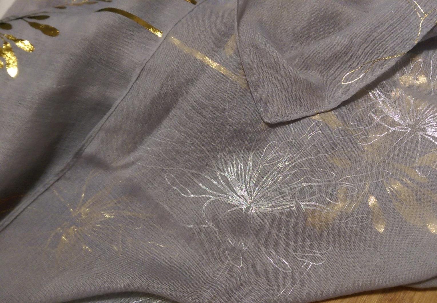 This is a dressier style than others I own and I love the look and very soft feel. When reversed, the gold flowers appear silver, very pretty (see last photo).
