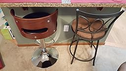 Whenever my nephew comes over, he liked banging our wrought iron back chairs on our granite counters. These are nice in that the backs sit below the counters, giving a clear view to our open concept living area. They tuck under the counter and that gives us a wider walkway behind as well. The difference is small but in a small living area, every bit helps.